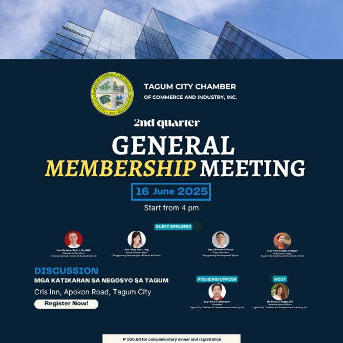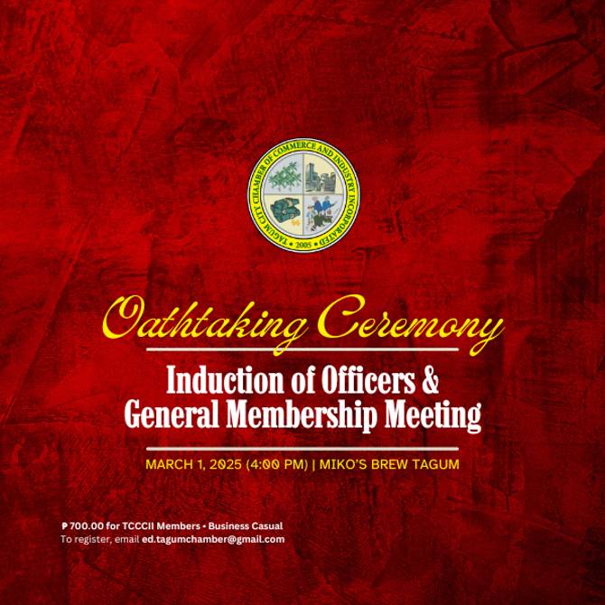 1Tagum City Chamber of Commerce and Industry Incorporated has worked and united to be a respected and reputable group of business leaders to advance the interests of its members for a more competitive and successful Tagum City.